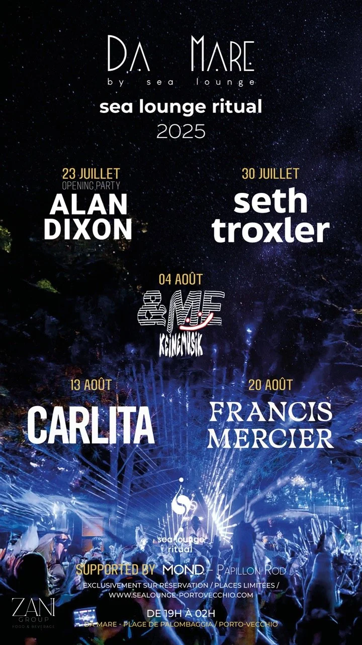 À travers cinq événements exclusifs, nous transformons le Da Mare en un véritable sanctuaire musical, entre ciel et mer.